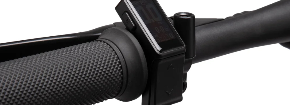Displayen på handtaget visar hastighet, hur långt du har kört och vilken växel du kör på.. Där går det även att sätta ett kodlås för extra säkerhet.
